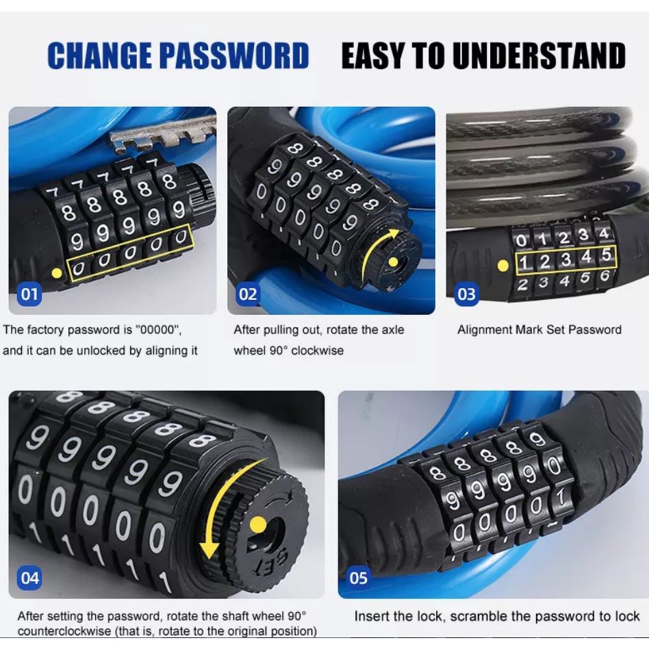 Length: 1m cable + 20cm 5-digit combination. Total approximately 1.2m