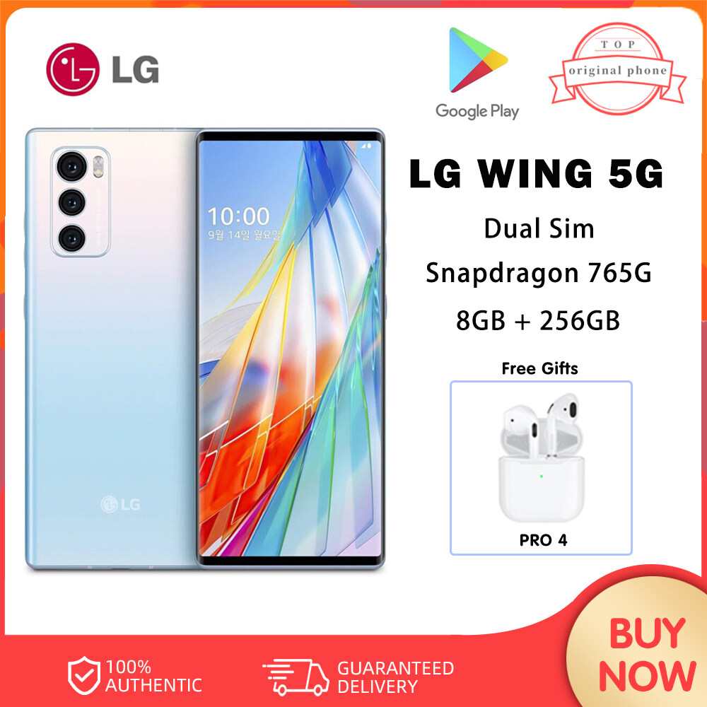 LG WING 5G CellPhone Dual Sim Unlocked Flip Dual Screen Mobile Phone 6.8'' 8GB+256GB Snapdragon 765 Android NFC SmartPhone LM-F100EMW