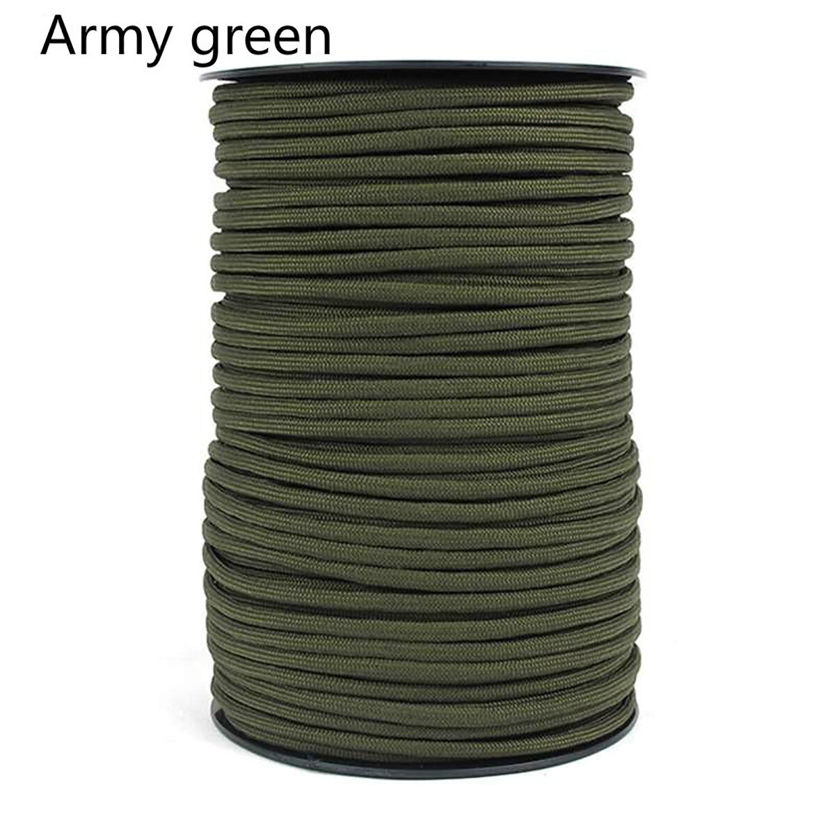Specifications: Material: Polypropylene & Polyester Strand Quantity: 9pcs Diameter: Approx. 4mm/0.15 inch Total Length: Approx. 100M/328 feet Color: Black, Army Green, Khaki, Orange,Desert Camouflage,Forest Camouflage,Brown,Jungle Camouflage(optional) Net Weight: Approx. 550g Packing List: 1 x Paracord Roll(100M)