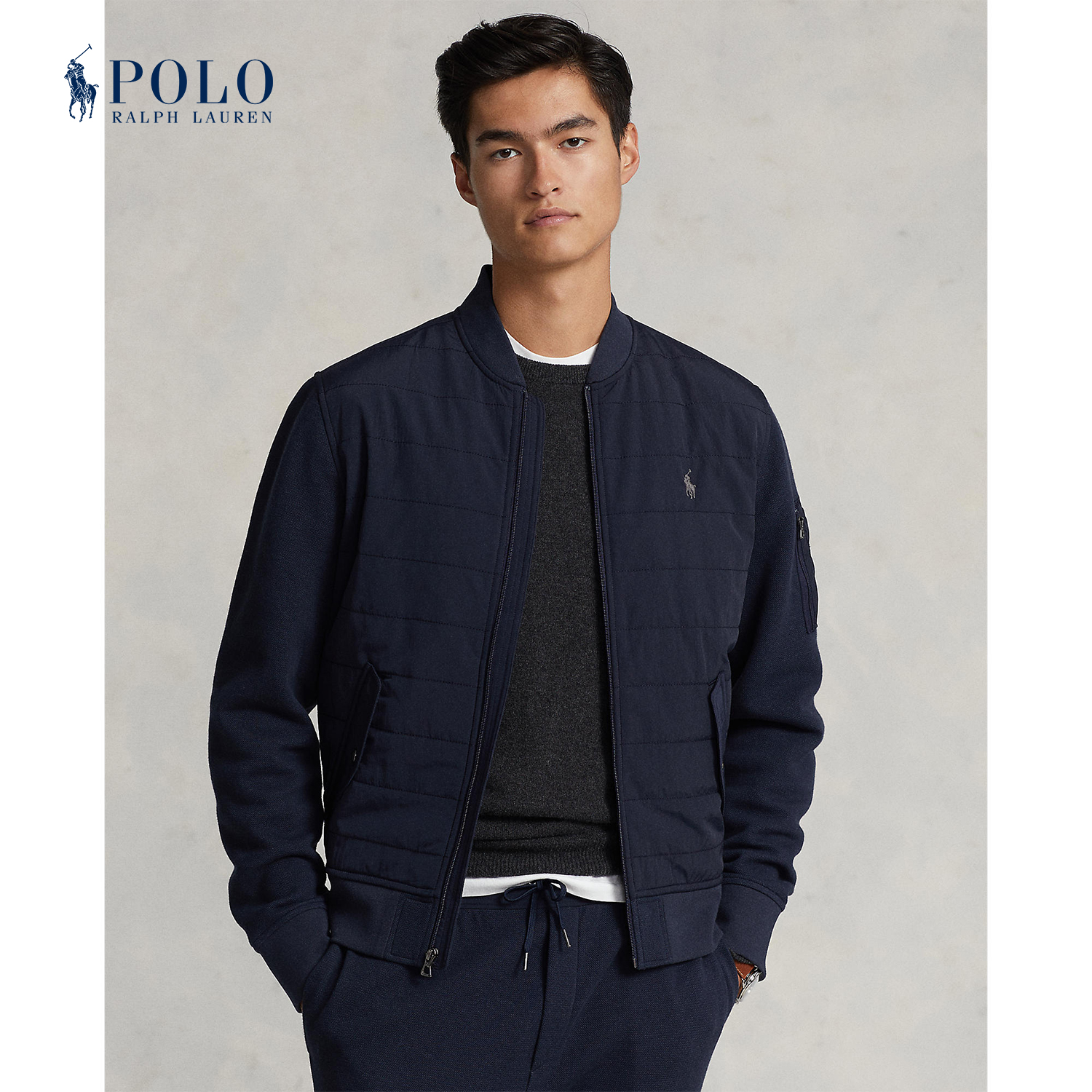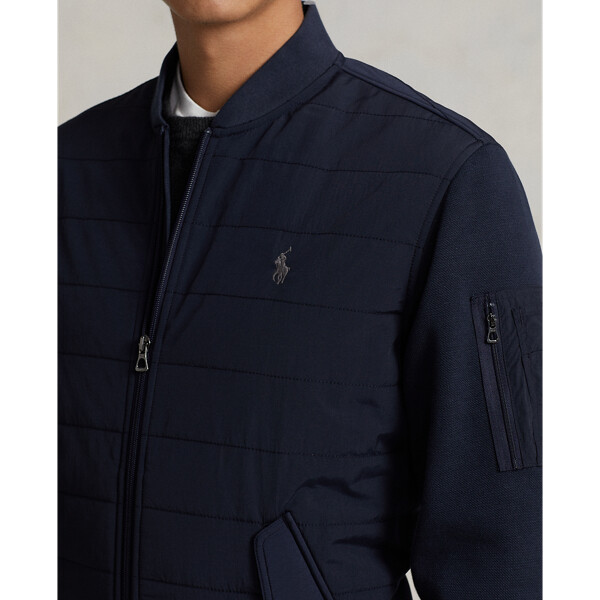 This cotton-blend jacket combines a double-knit mesh fabric with woven panels for a modern take on texture. Ralph Lauren partners with Better Cotton™ to improve cotton farming globally. Better Cotton trains farmers to use water efficiently, care for the health of the soil and natural habitats, reduce use of the most harmful chemicals, and implement the principles of decent work.
