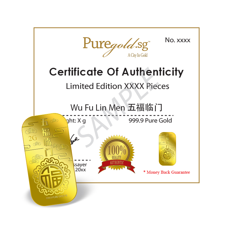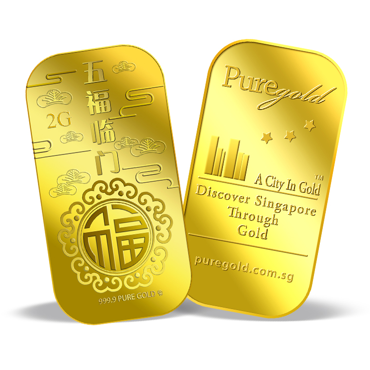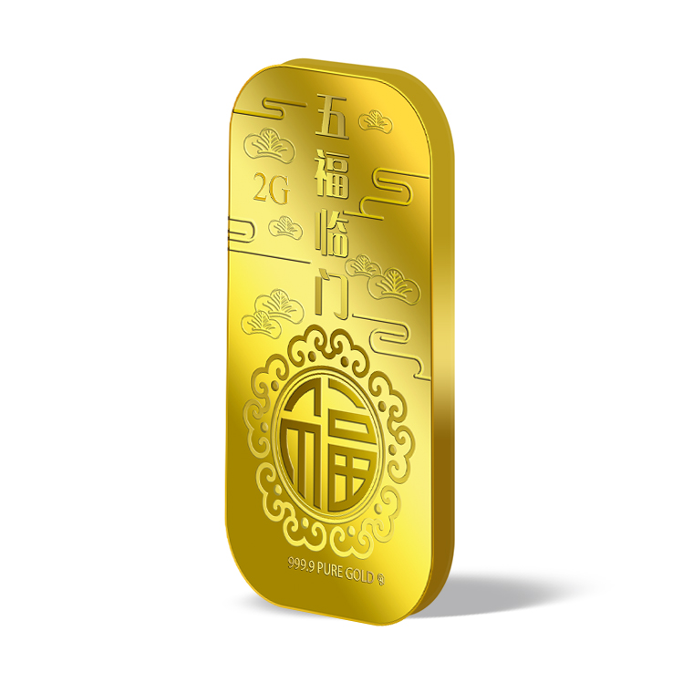 Puregold 2g Wu Fu Lin Men 五福临门 999.9 Pure Gold Bar