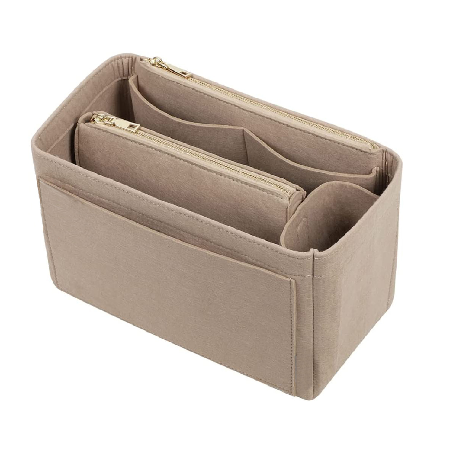 Felt Purse Organizer with High quality and New Materials are made of Sturdy ,Soft and pliable, Lightweight Felt fabric makes your purse a better protect.The Zipper of the organizer are made of Metal, Durable, Fashion and smoother sturdy and keeps your bag shape and shipshape.