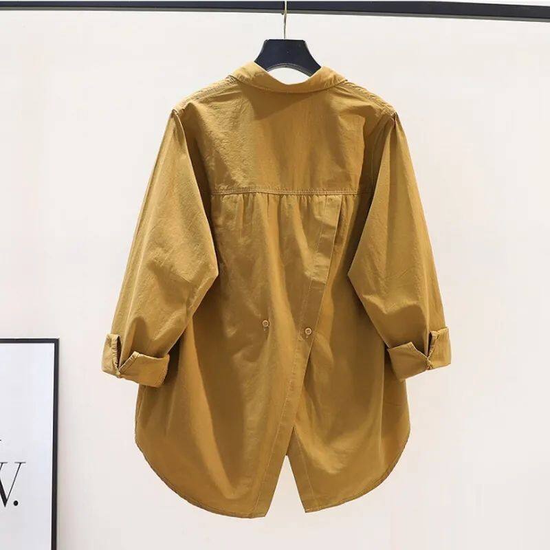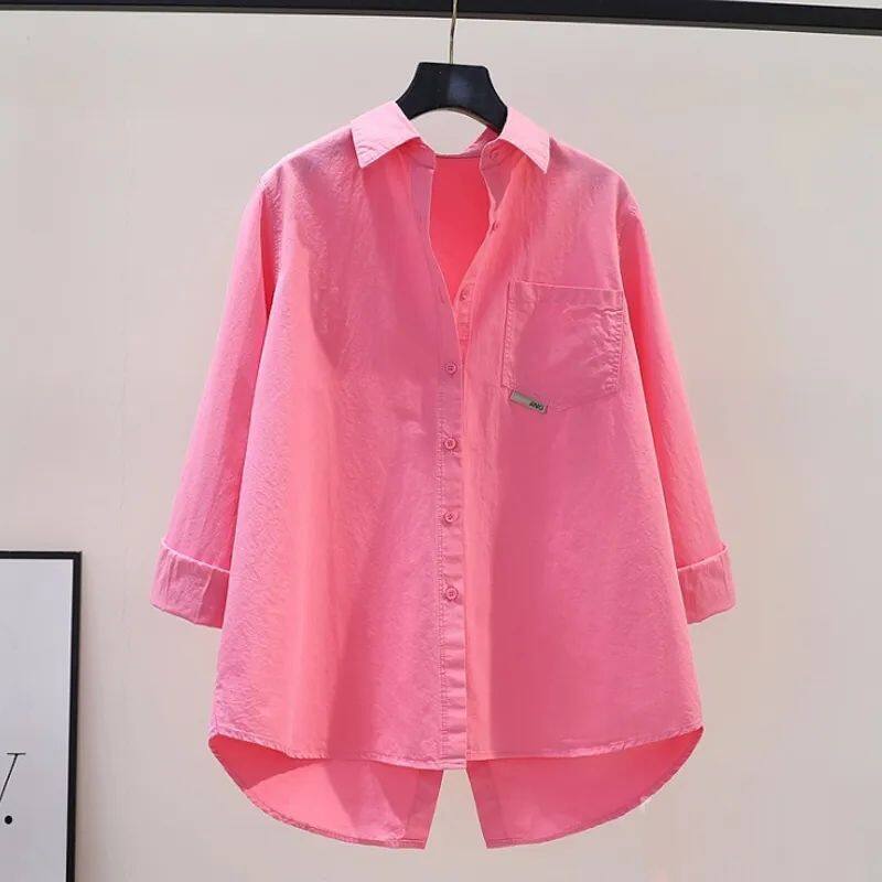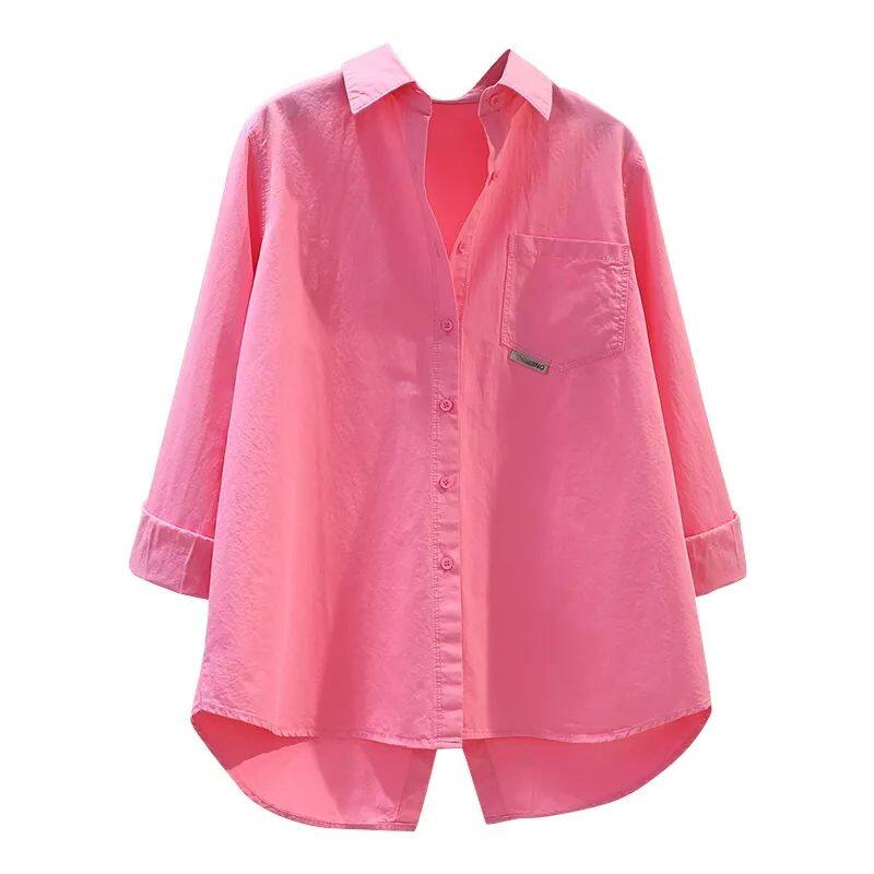 Design Sense Back Split Rose Pink Shirt Women Loose Long-sleeved Shirt 2023 Spring Versatile Cardigan Top