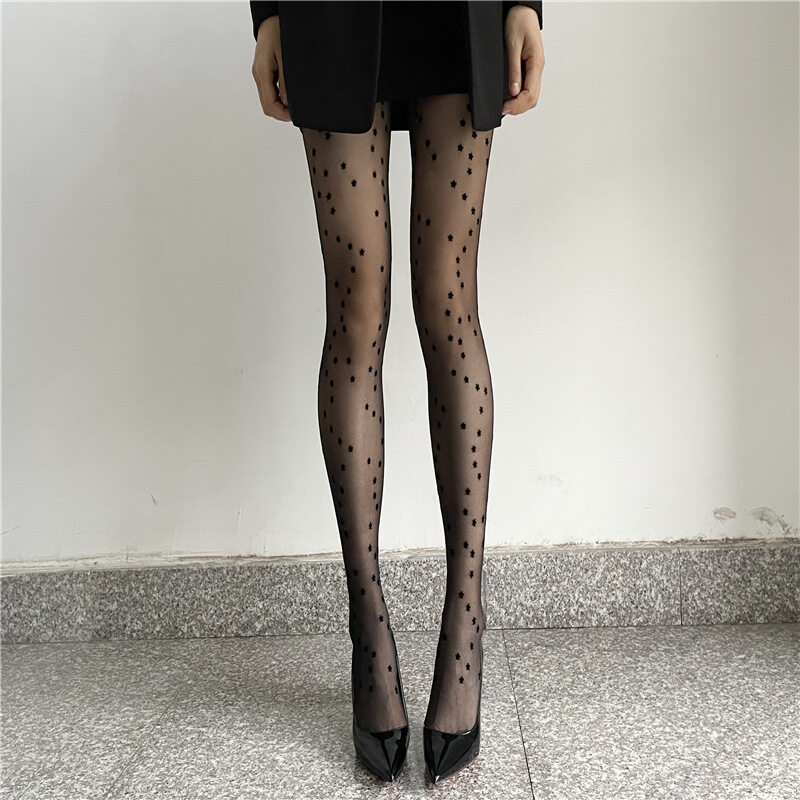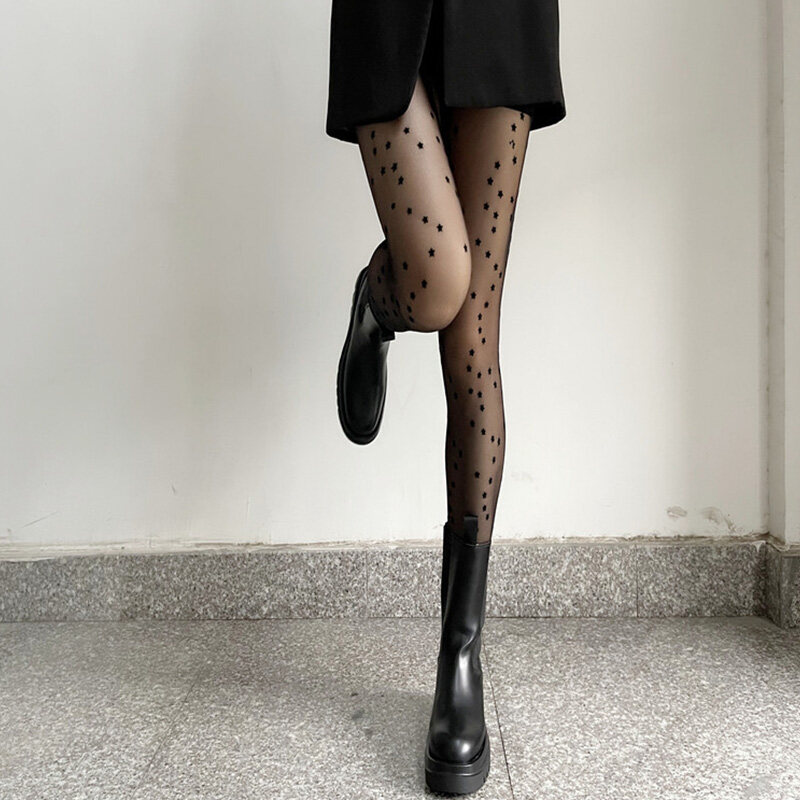 Women Sexy Tights With Patterned Tattoos Pantyhose Inscriptions Dots Pattern Ladies Thin Long Black Stockings