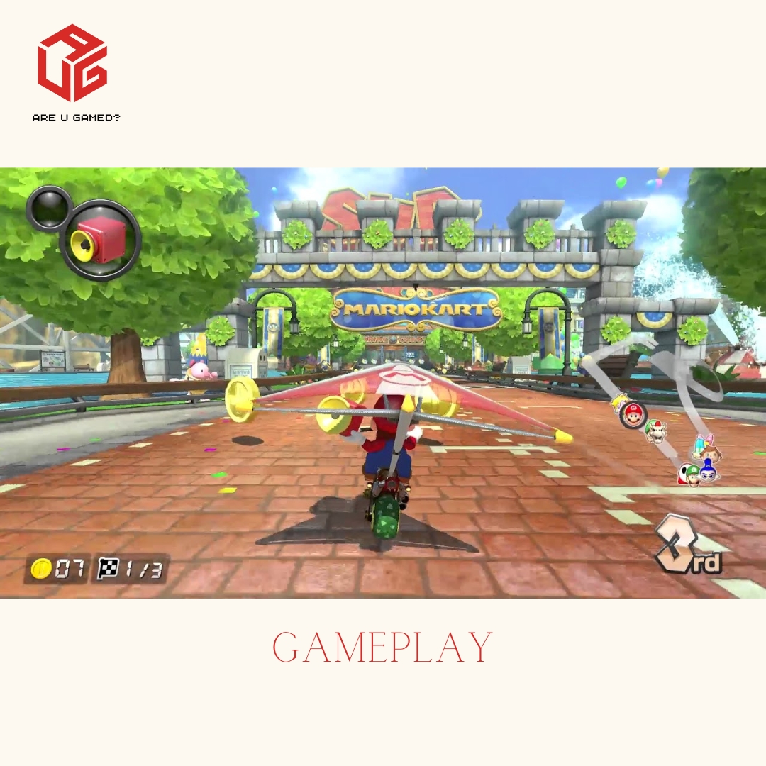 ✅Region: Middle East (MDE) ✅Release date: 27 April 2017 ✅Publisher: Nintendo ✅Genre: Racing Video Game ✅Language: Dutch, English, French, German, Italian, Japanese, Korean, Portuguese, Russian, Simplified Chinese, Spanish, Traditional Chinese ⚜️Burn rubber across Mushroom Kingdom raceways—underwater, in the sky, upside-down in zero-g, and past the finish—for the win! Get revved up for local multiplayer*, online** in-game tournaments, a revamped battle mode, and more! ⚜️Stay fresh in the Mario Kart™ 8 Deluxe game by playing as guest characters Inkling Girl and Inkling Boy! You can use their Splatoon inspired karts on their battle mode stage, Urchin Underpass. There are also returning items, like Boo, the item-stealing ghost, and the Feather, used exclusively in battle mode. ⚜️Veterans rejoice—you can hold two items at once! Prove you’re the world’s best racer and battler in online tournaments, or simply race and battle friends online. With many control options and handheld mode, there’s always a way to play on the Nintendo Switch™ system! AreYouGamed? UEN: 53454230A Singapore Registered Company