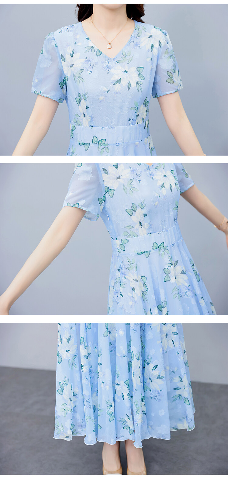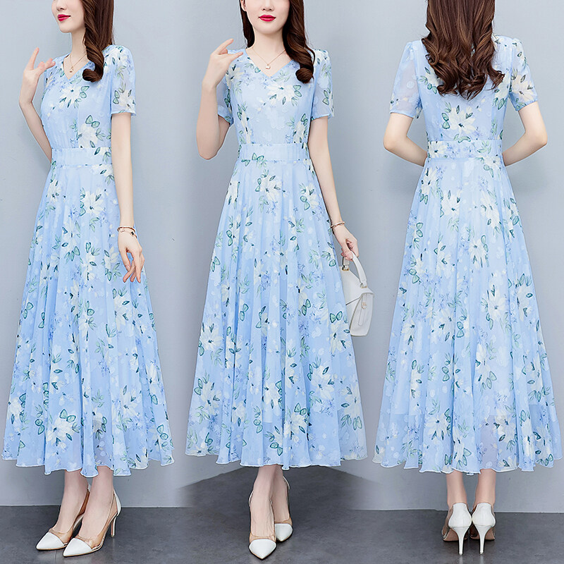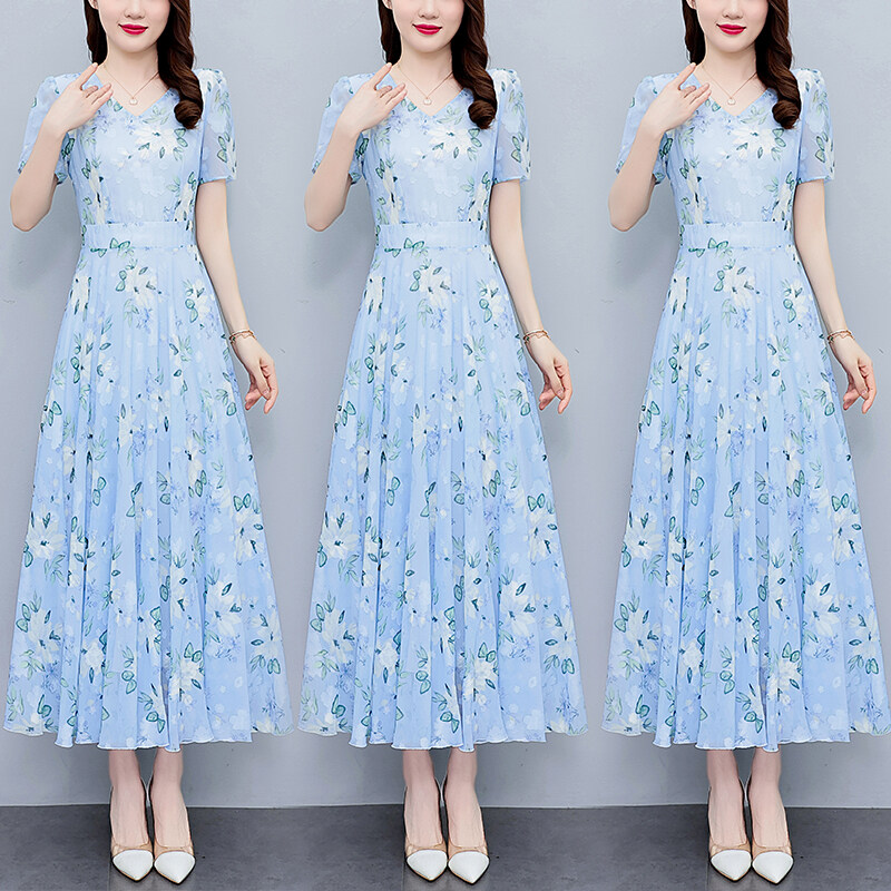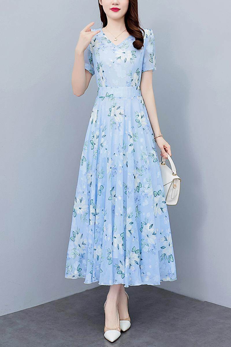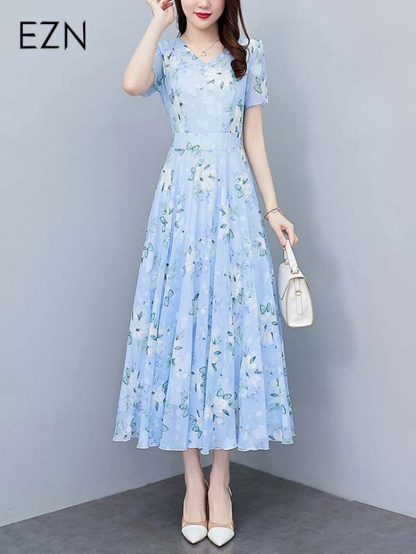 EZN Chiffon Women Dress Dinner Party Plus Size Elegant Floral Long Dresses 7137