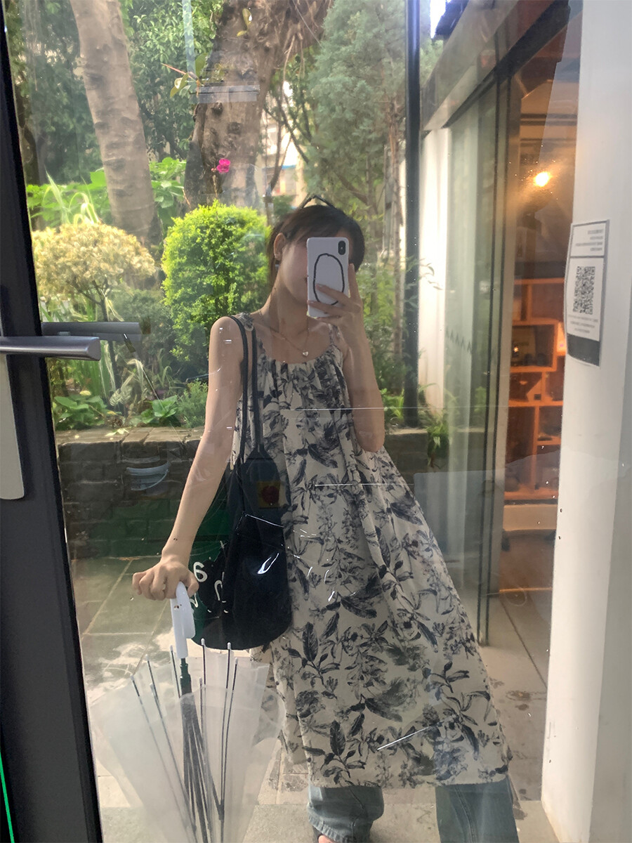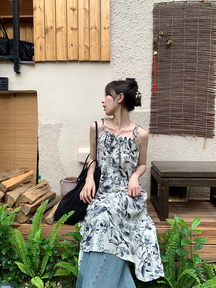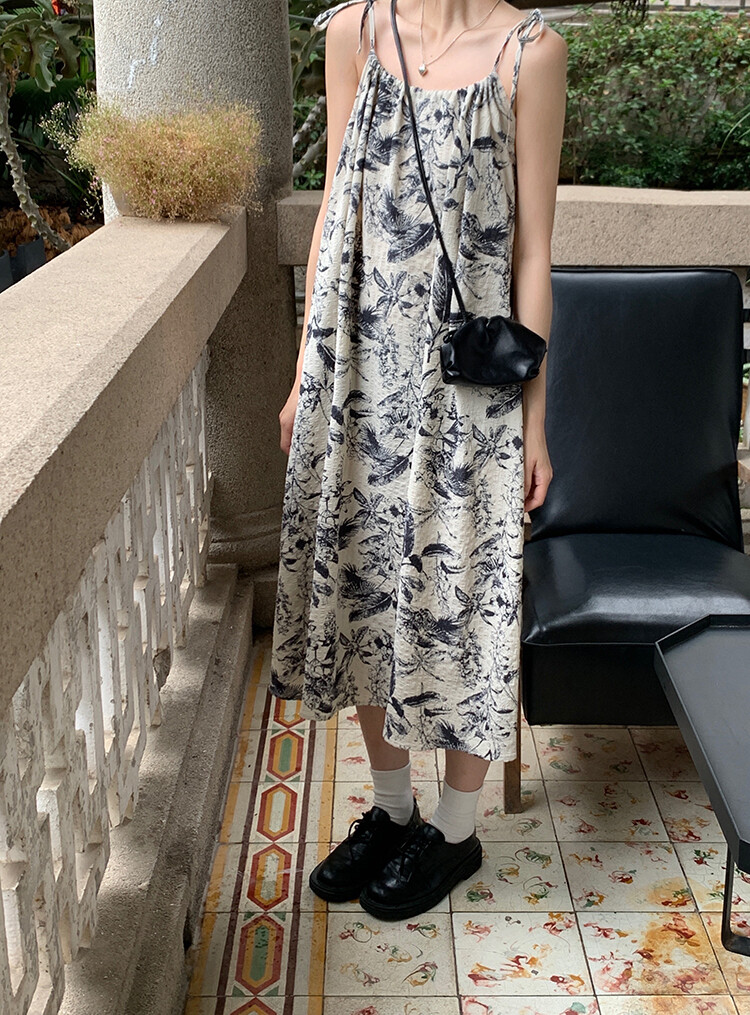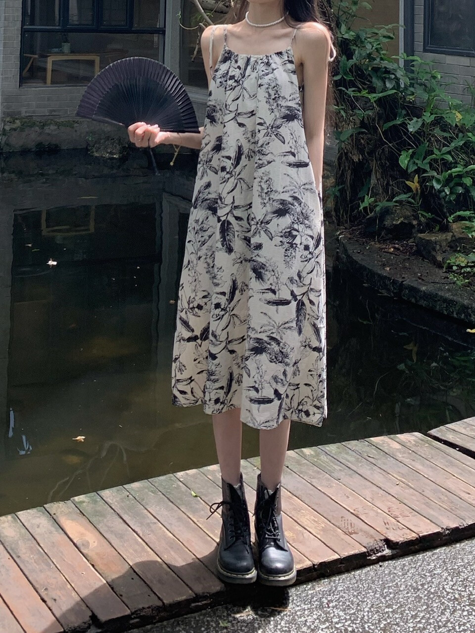 Style: A- line dress sweet floral print midi dress Spaghetti Strap dress