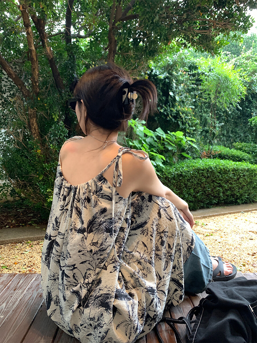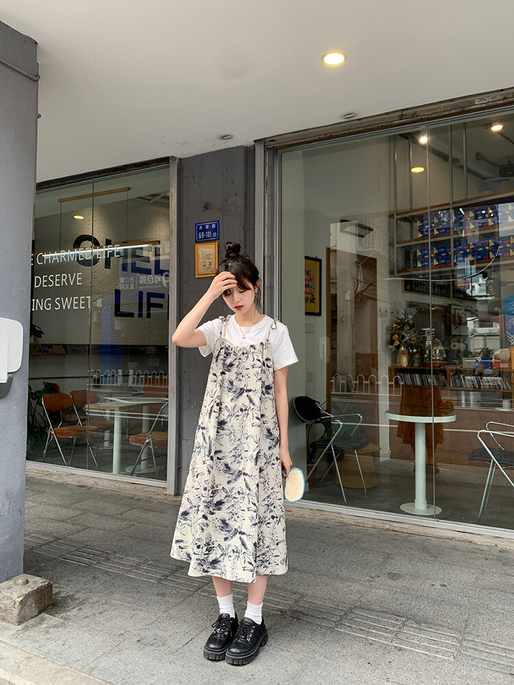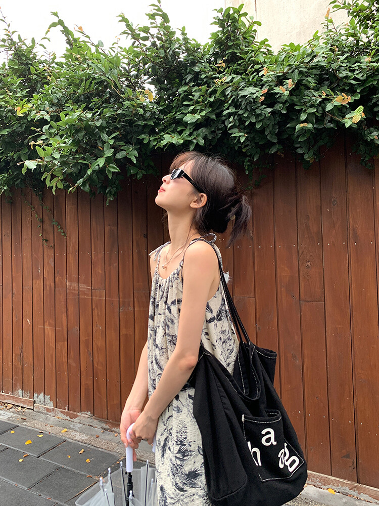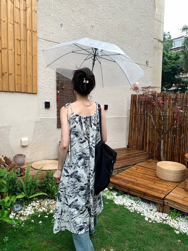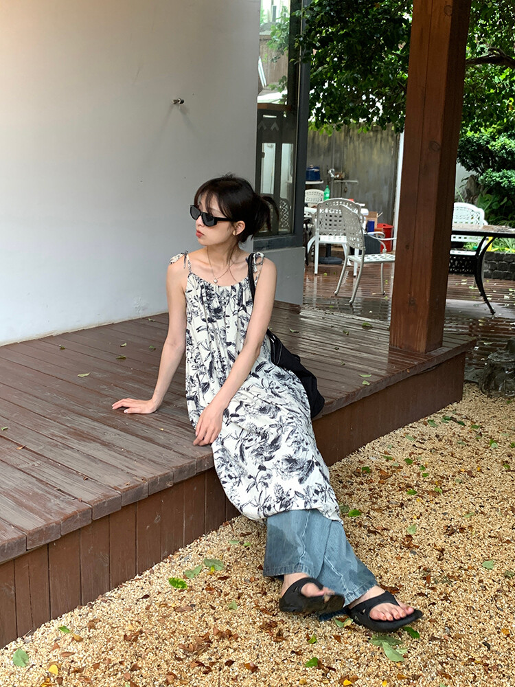 Style: A- line dress sweet floral print midi dress Spaghetti Strap dress