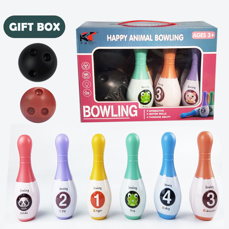 【Free Wrapping】Mini Bowling Game set, 2 balls+6 pins. Light weight indoor activity, ball toy for kids, baby, toddler.HEYBABE.