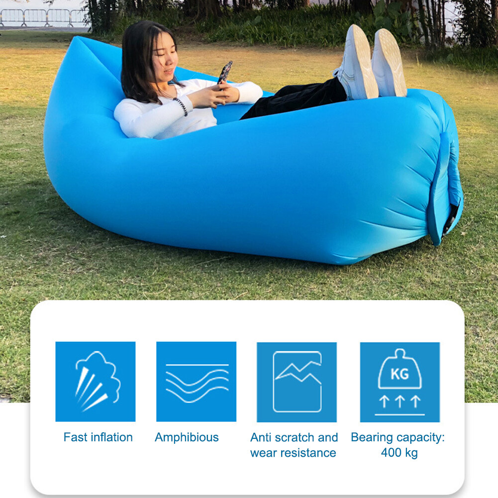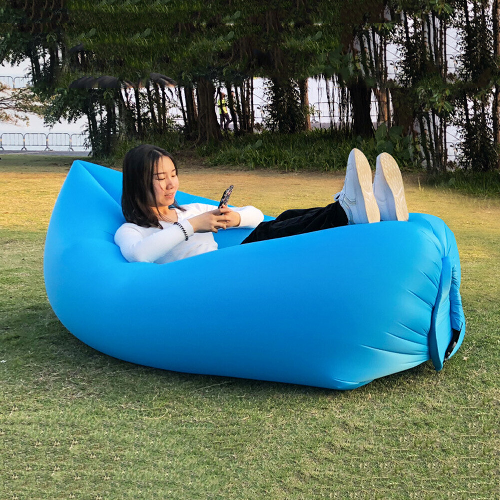 2. Simple & Fast Inflation: The camping air cushion is inflated in 5 seconds, with double air inlets and built-in PE sealing film. No need for a pump, just open the sofa bag under high wind conditions, blow air directly against the wind or lift it 2-3 times.