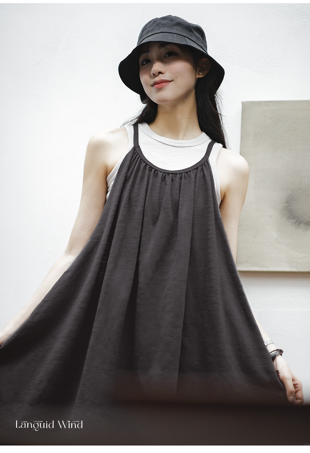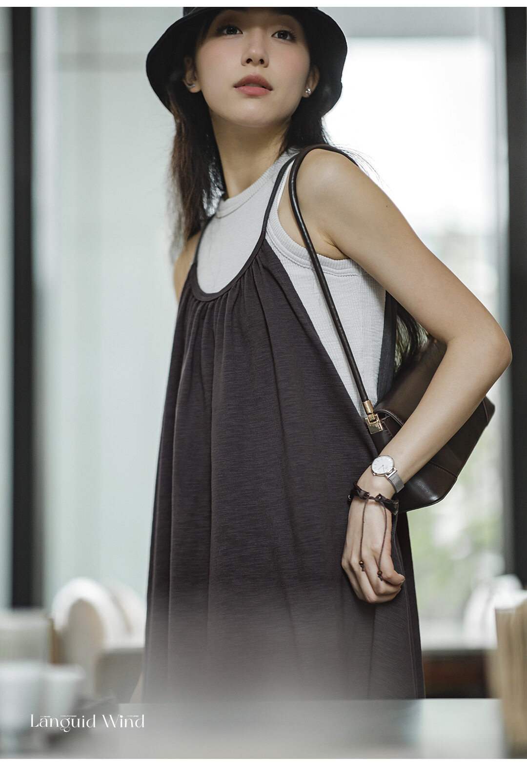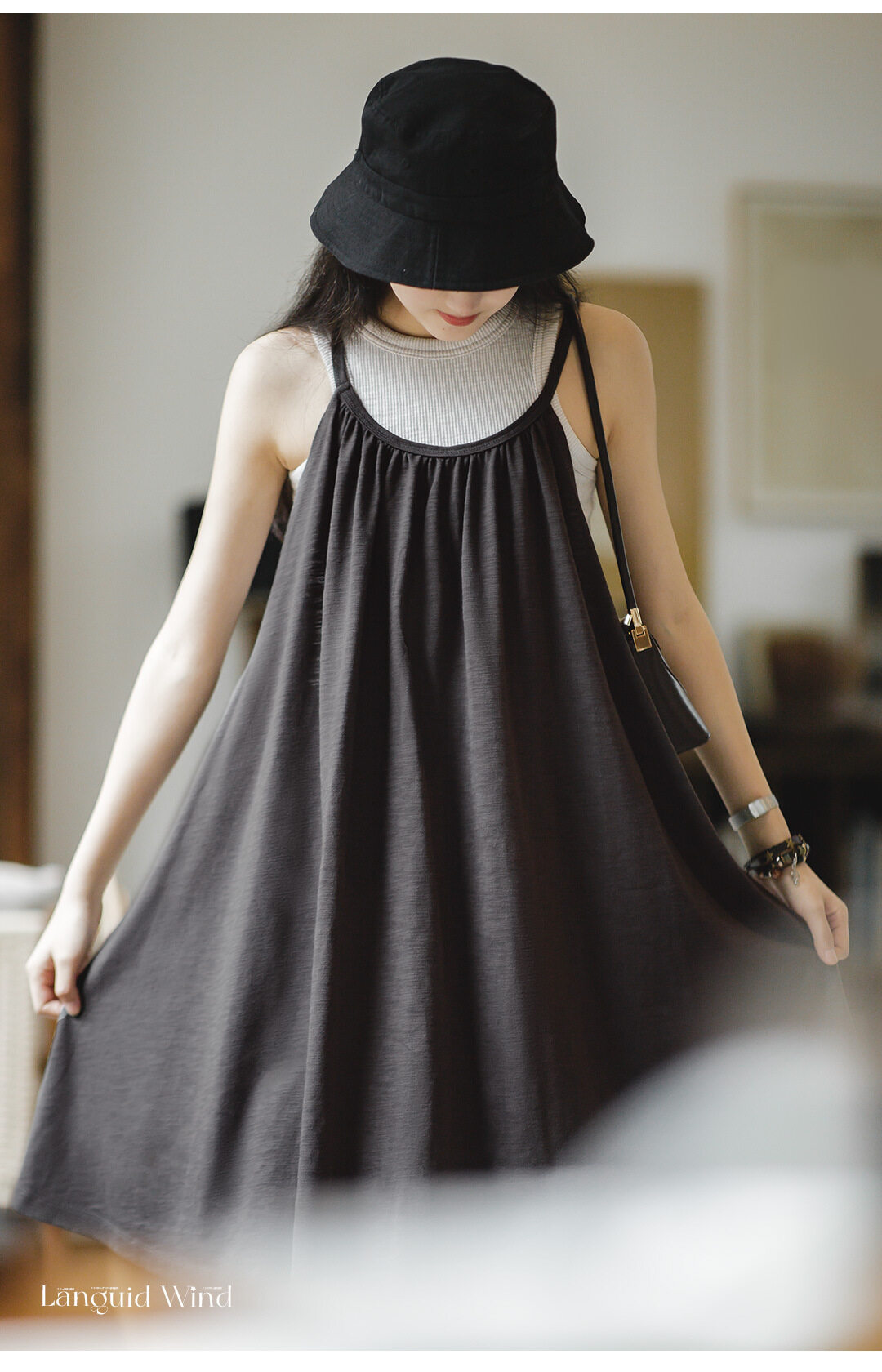 MADEN brand Sweetheart Ladies Japanese Sleeveless Hanging Strap Layup Cover Up Loose Long Dress Slim and Lazy Style Dress