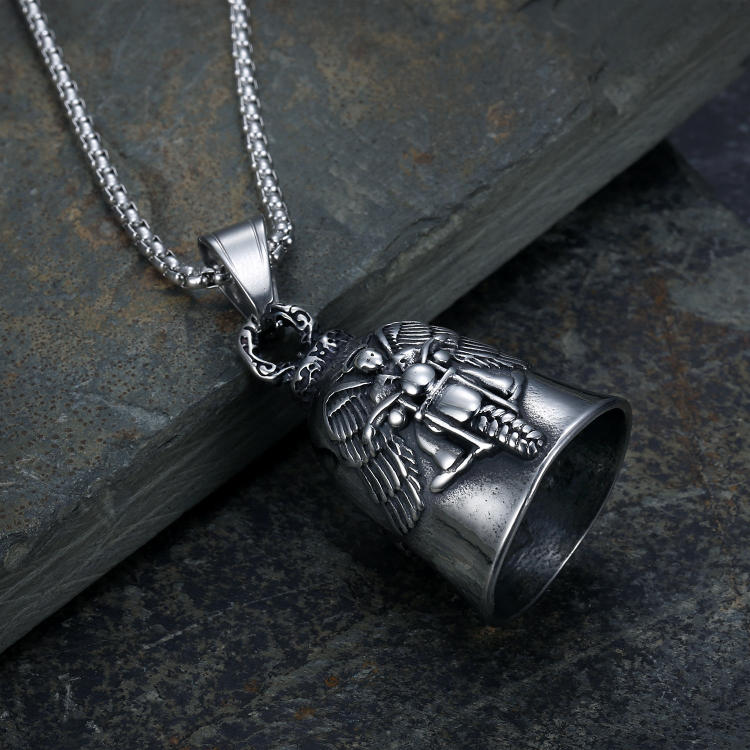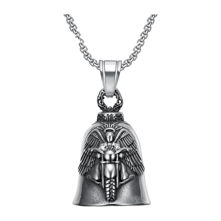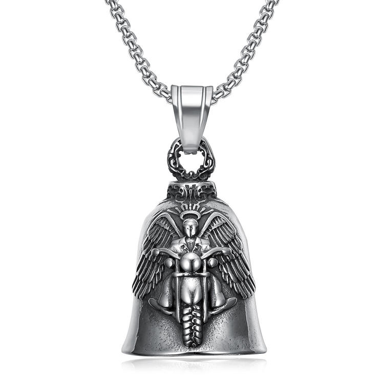 Mens Motorcycle Wind Retro Punk Hip Hop Rock Wings Motorcycle Character Bell Pendant Necklace Rock Party Accessories Riding Bell decent