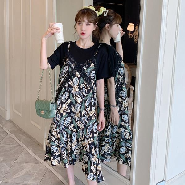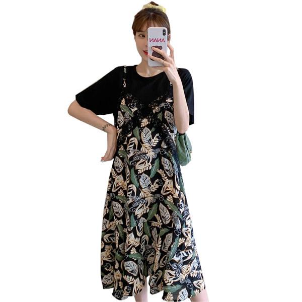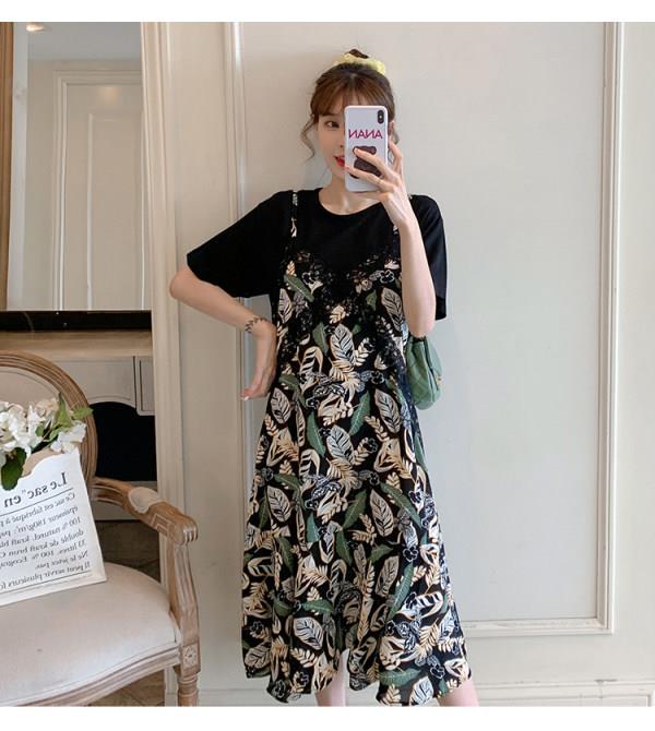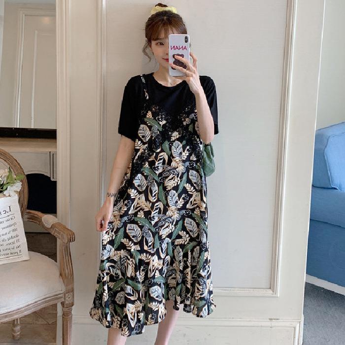 ¤✴ Fat sister's fake two-piece dress plus size women's summer new Korean version loose slimming chiffon skirt