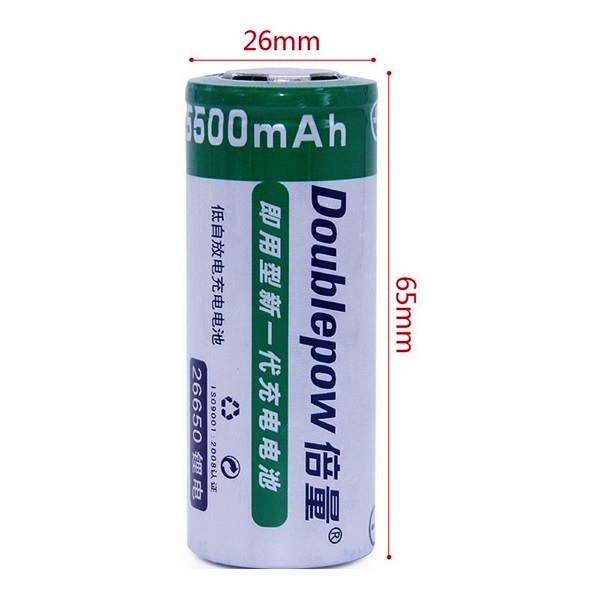 Doublepow 26650 5500mAh Li-on Rechargeable Flat Head Battery