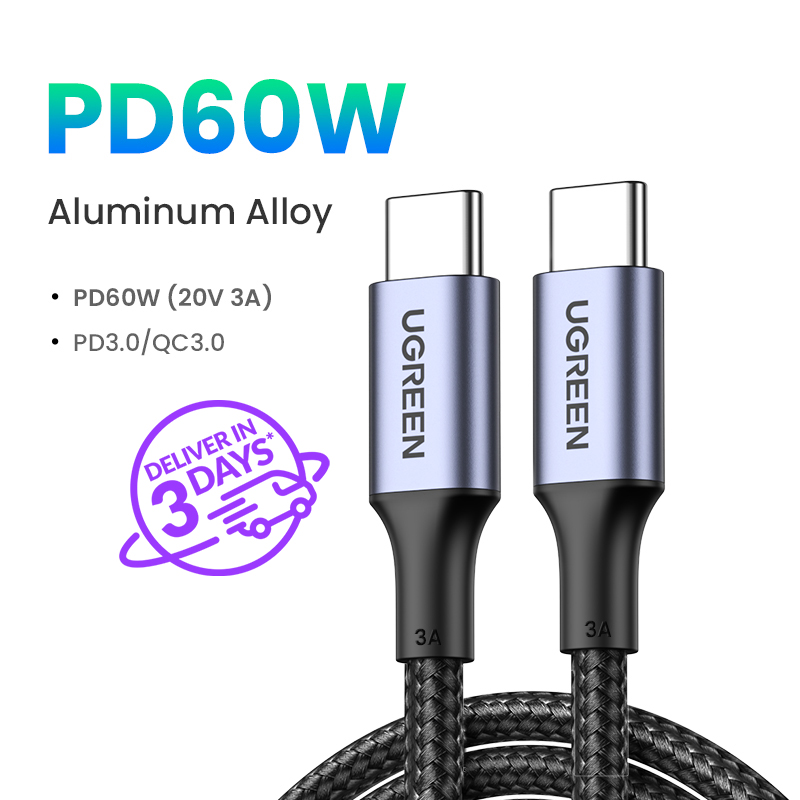 UGREEN USB Type C to USB C PD 60W/100W Charge Data Transfe Cable for Apple MacBook Air M1 SAMSUNG S20 S21 S22 Ulrta Note 10 Huawei Matebook iPad Pro 4 2020 Ipad Pro 2022, Chromebook Realme 6 6i Huawei