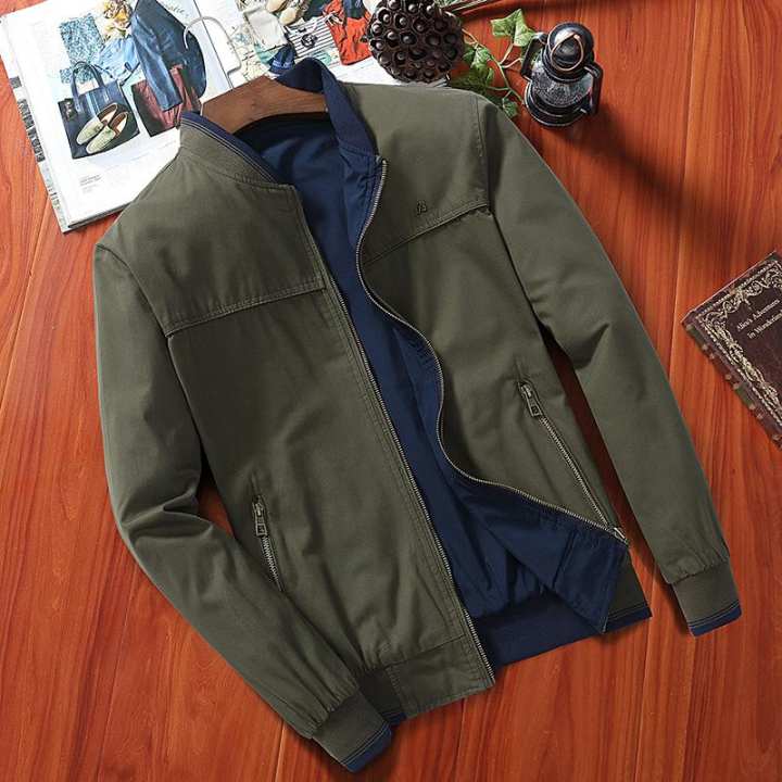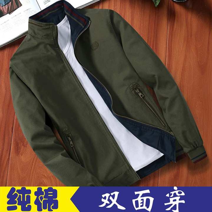 On both sides can be wear counter selection of cotton fabric feel good and comfortable breathable not from the ball does not fade cotton washed Effect ink recognized in the pass Express Double-sided wear middle-aged men's coat jacket autumn Plus-sized thin cotton jacket shirt casual men's Spring and Autumn outerwear