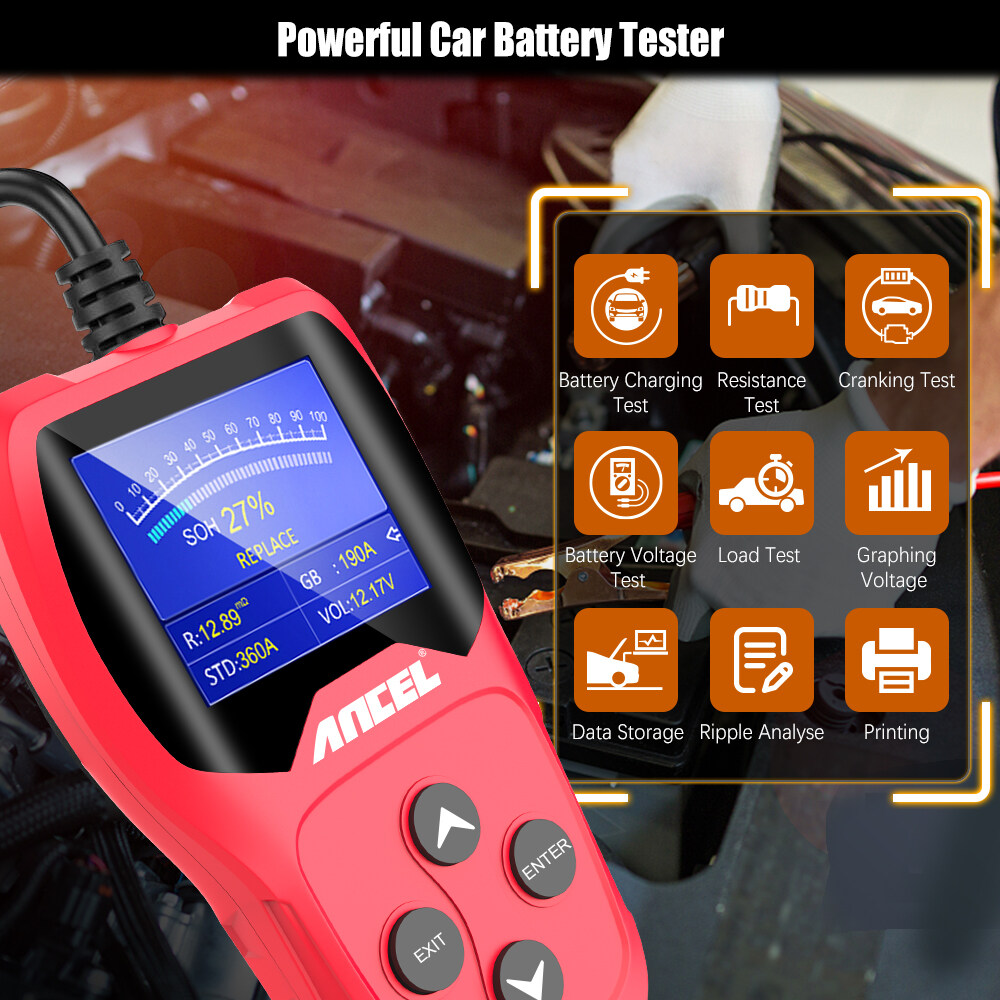ANCEL BA201 Car 12V Digital Battery Tester Analyzer Checker 100-2000CCA Auto Cranking Charging Test Tool Battery Voltage Load Health Display Motor Tool PK KW600