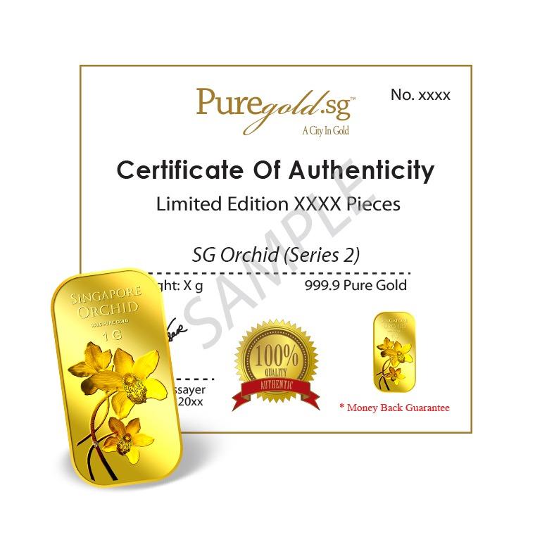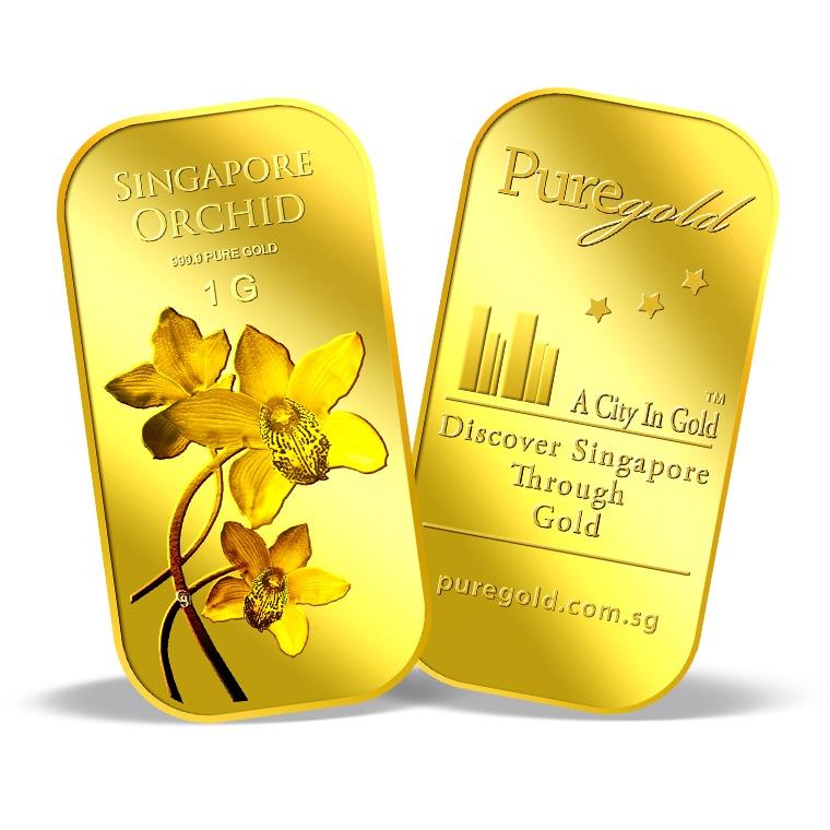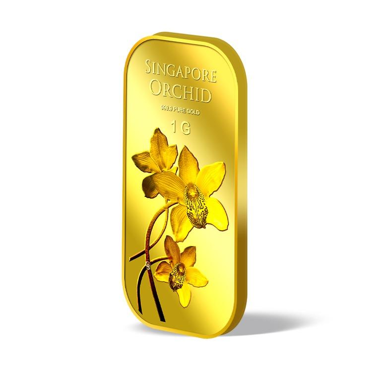 This robust free-flowering plant has long been a symbol of love and beauty, making it an elegant addition to any gold collection.1g gold bar embossed with the image of Singapore Orchid.
