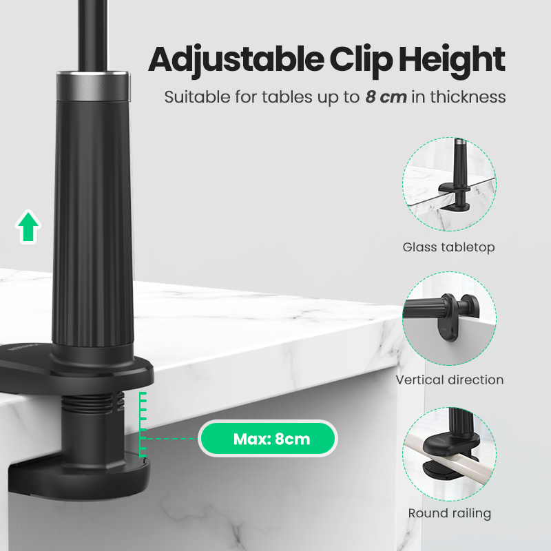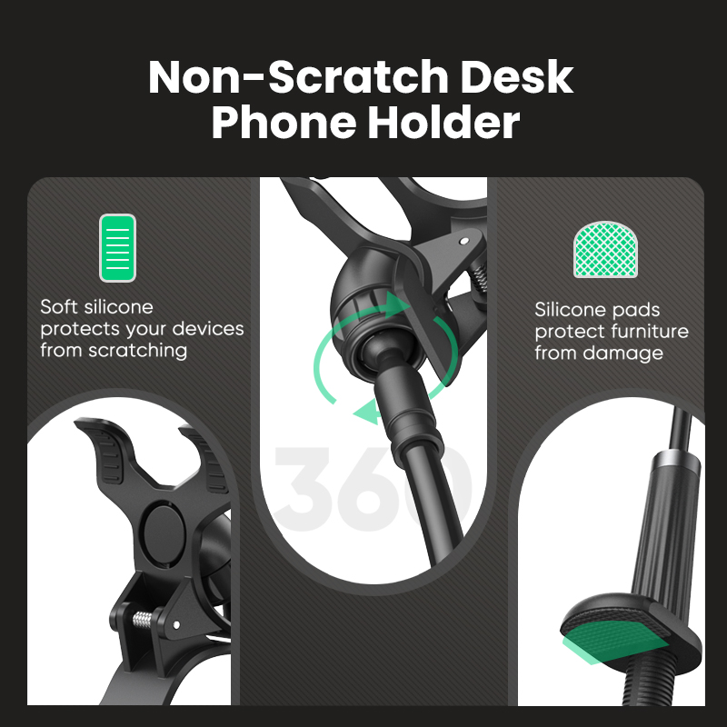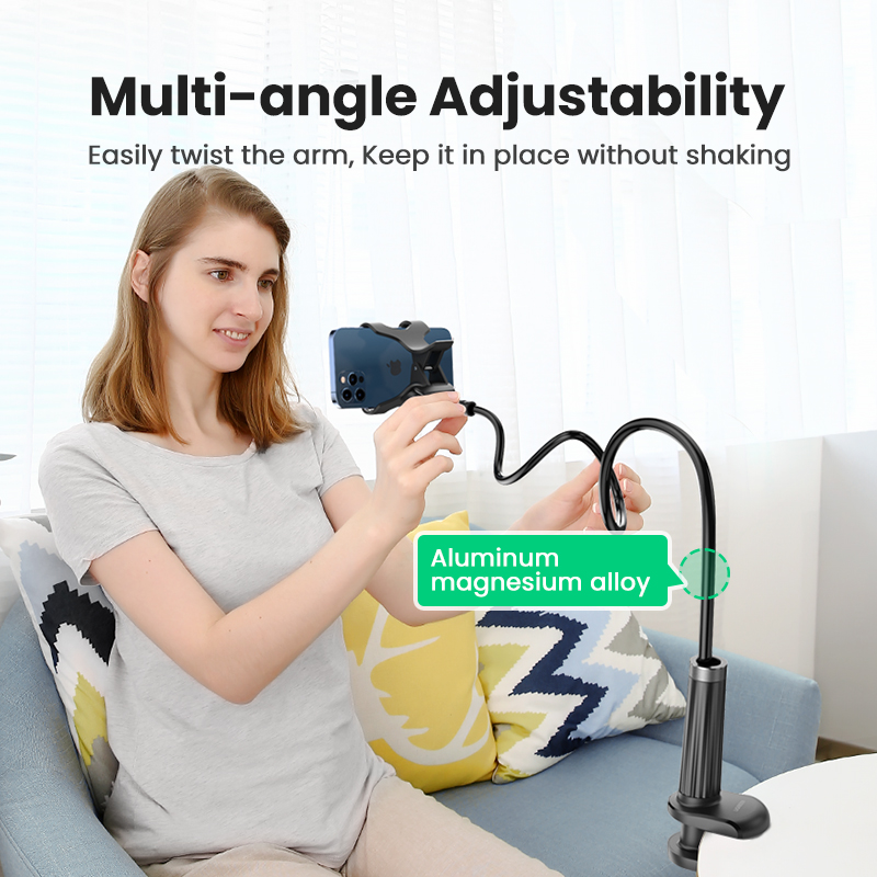 UGREEN Gooseneck Mobile Phone Clip Long Arm Holder Clamp Mount for SAMSUNG S22+/iPhone 13 Pro Max/Huawei P50 Flexible Bed Desk Table Clip Bracket for Phone 4.0-7.2 Incher