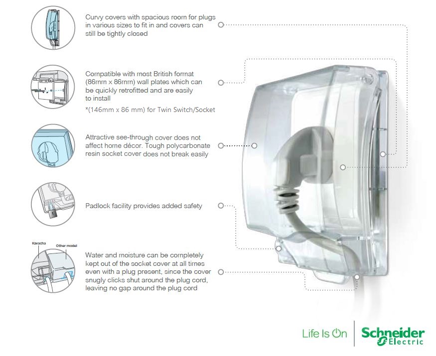 Schneider Electric Kavacha Weatherproof Socket Cover Switch Protector 1G 2G 1Gang 2Gang Waterproof