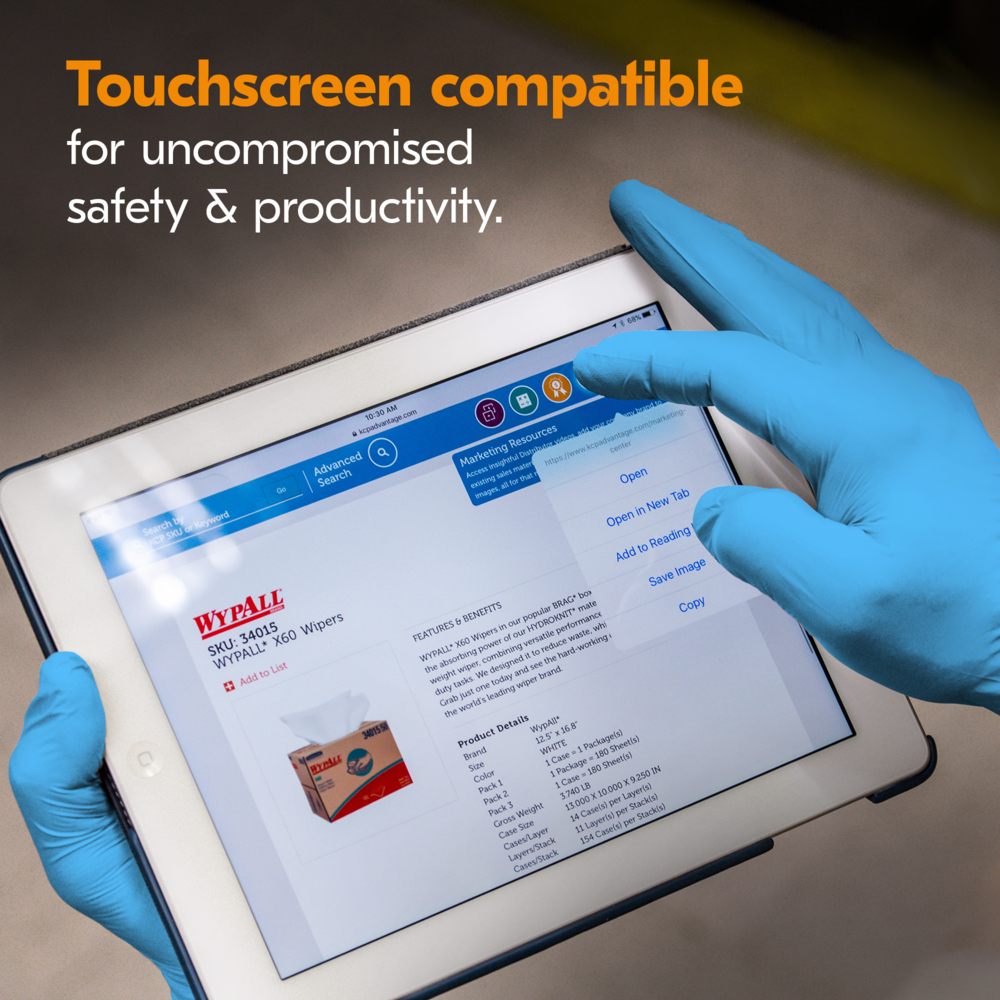 • These powder-free, ambidextrous, touchscreen compatible gloves meet U.S. FDA regulations for food contact applications