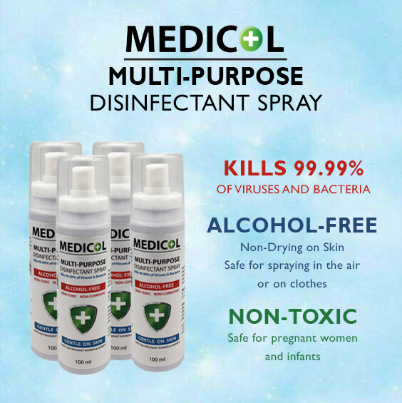 Non alcoholMEDICOL Hand Sanitiser Disinfectant Spray (100ml x 4) Travel Size Hand Sanitizer Alcohol Free l Non Toxic Safe on flight